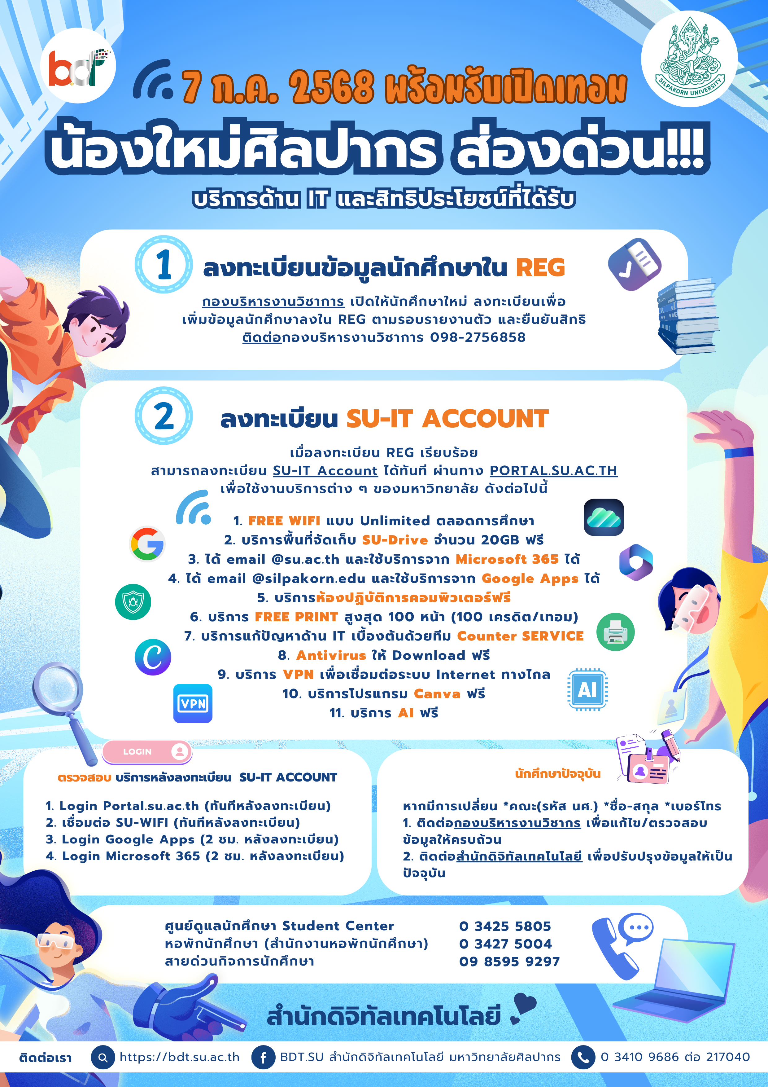 ลงทะเบียน SU-IT Account ได้รับบริการต่าง ๆ ของมหาวิทยาลัย ดังต่อไปนี้