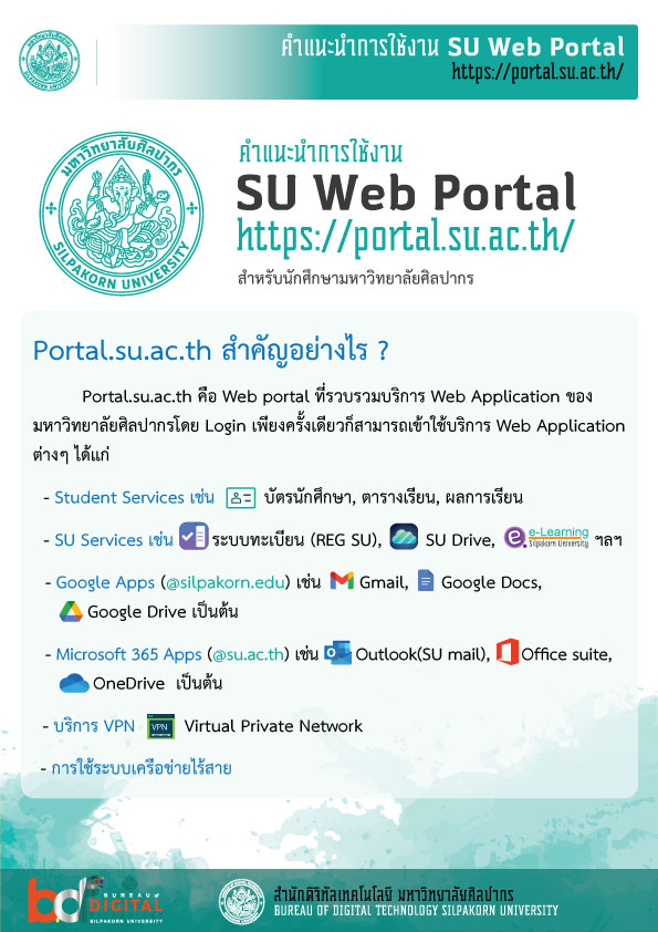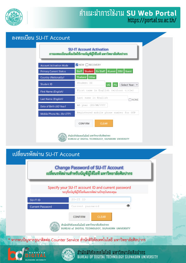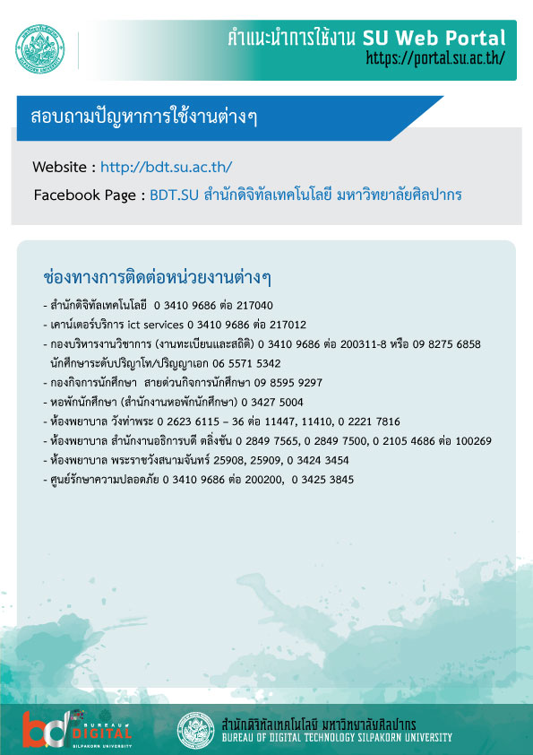 ติดต่อทีมงาน : แจ้งฝากข้อความผ่าน Facebook : BDT.SU สำนักดิจิทัลเทคโนโลยี มหาวิทยาลัยศิลปากร